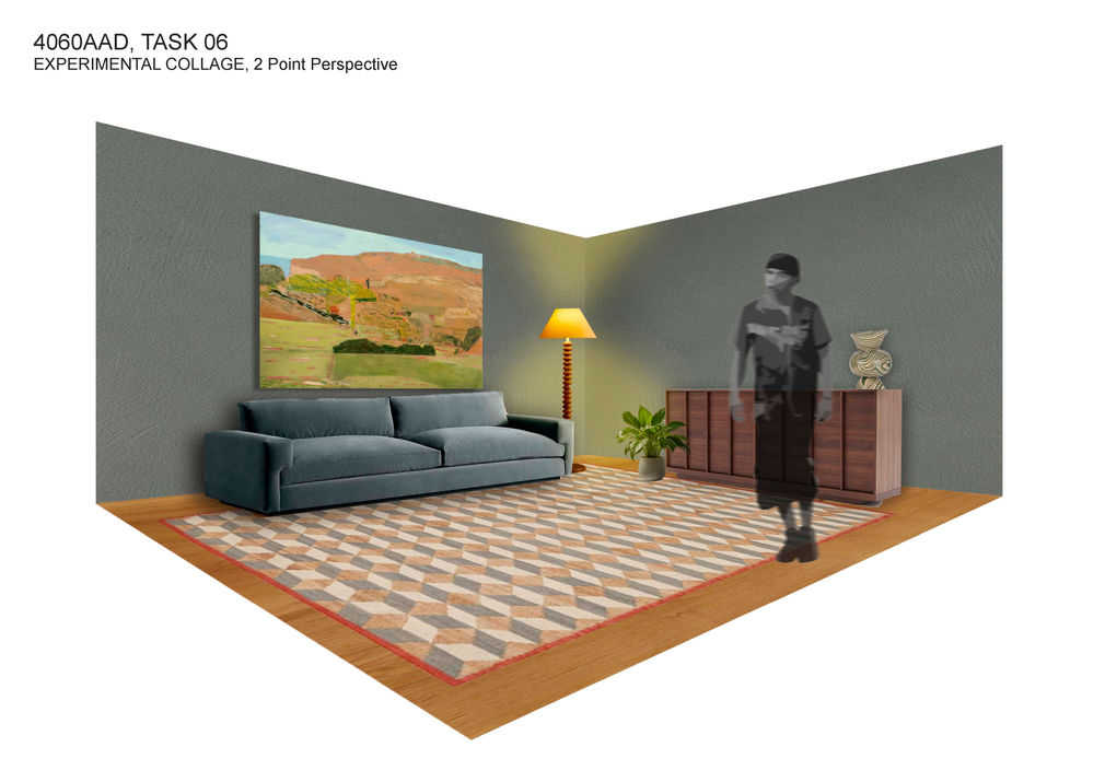 The digital collage shown above was created following an initial client interview, I wanted to portray the overall aesthetic and needs/wants of the client at this stage in a quick and easy to understand manner. (4062AAD)